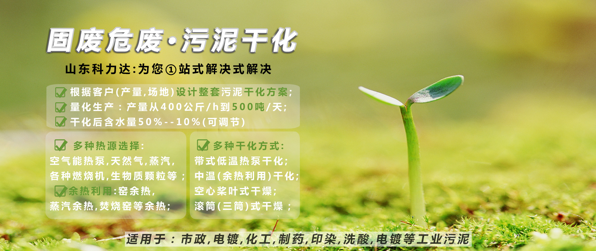 科力達智能裝備(山東)有限公司是一家幫助企業實現污泥減量的新型科技公司,專注污泥干化機,污泥干化設備,污泥烘干設備,污泥干燥設備,污泥烘干機,化工污泥烘干設備,電鍍污泥烘干設備,化工污泥干燥設備的研發,將企業生產帶來的污泥,通過壓濾機脫水,直接進入烘干設備,通過污泥水分蒸發,幫助企業實現大產量污泥減量。我們集研發、生產、銷售、安裝、服務為一體的專注污泥干化設備供應商。廣泛適用于:化工廠、電鍍廠、皮革廠、制藥廠...
